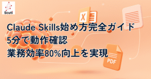 Claude Skills は、Anthropic社が提供するClaude AIに専門知識を追加できる機能で、Excel・PowerPoint・PDFの自動生成や独自ワークフローの組み込みを実現します。会話形式での作成なら5分、手動作成でも30分程度で完了し、トークン使用量を最大98%削減しながら専門レベルの出力が可能です。
